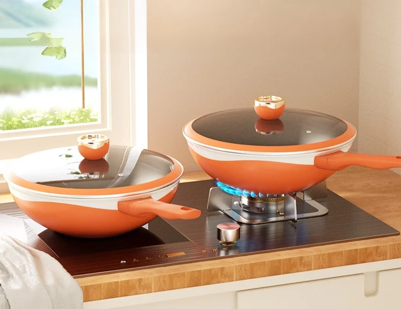 高顏值雙色炒鍋 不沾鍋炒菜鍋 無塗層健康平底鍋 國標爐灶廚房必備